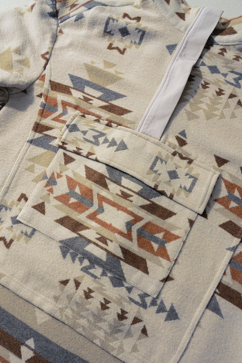 Apricot Aztec Print Collared Flap Pocket Sweatshirt