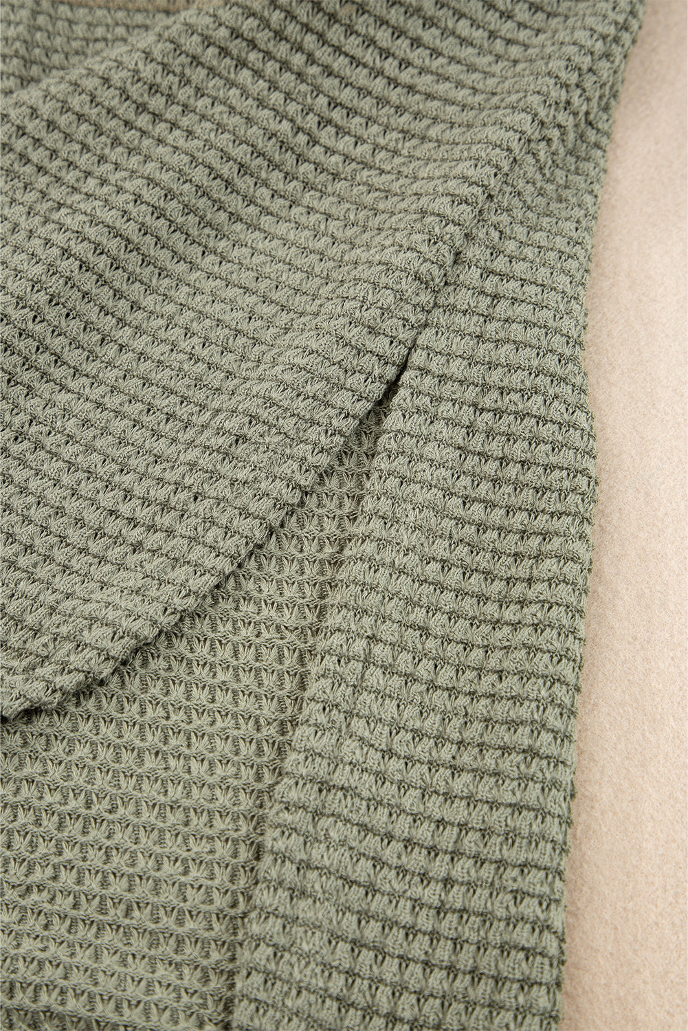 Jungle Green Waffle Texture Curved Hem Side Slit T-shirt Dress