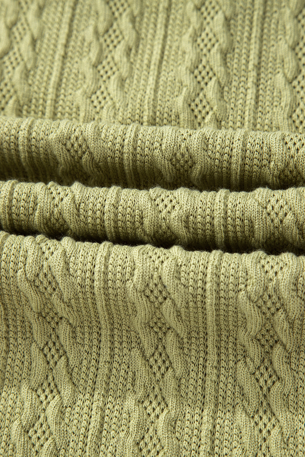 Spinach Green Textured Knit Slim Fit Notch V Neck T Shirt