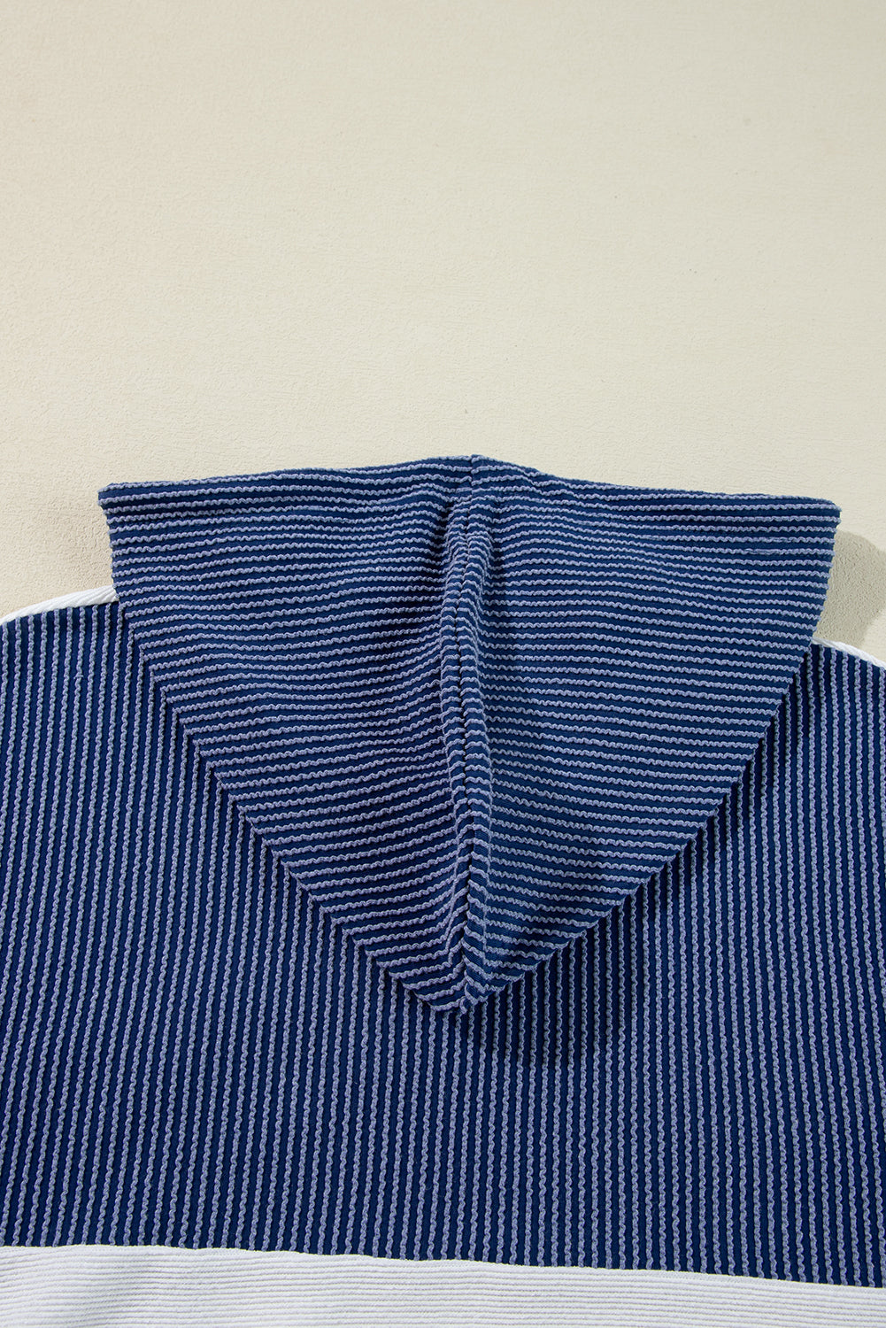 White Corded Colorblock Patch Pocket Drawstring Hooded Top