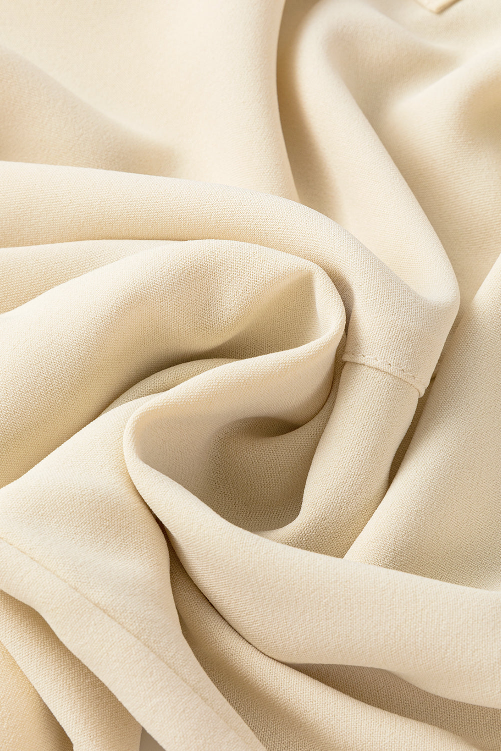 White Solid Color Lantern Sleeve Notched V Neck Blouse